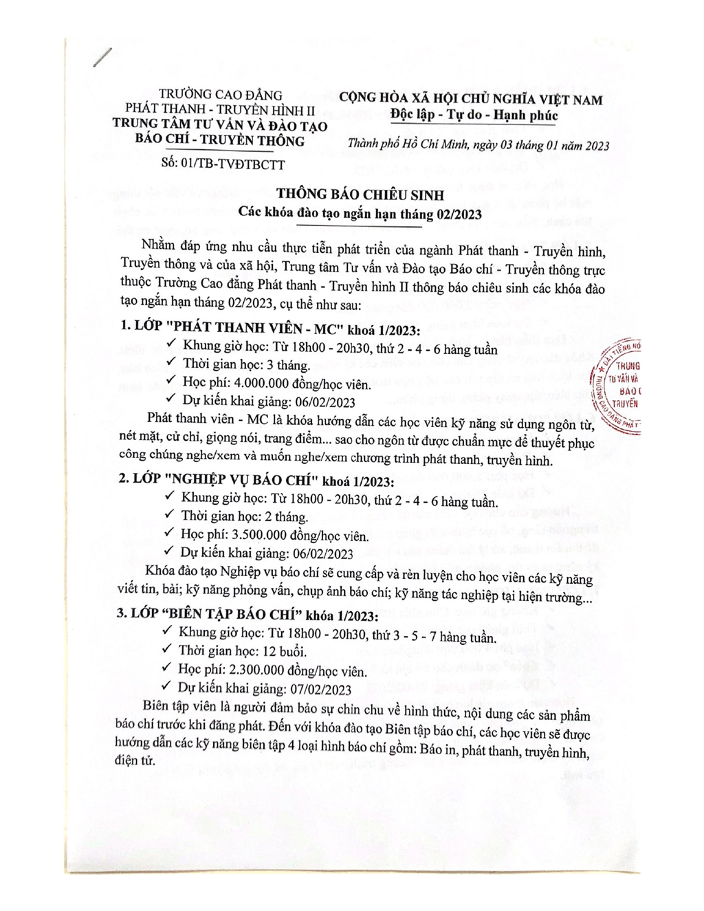 - 04.01.2023Thông báo chiêu sinh các khóa đào tạo ngắn hạn tháng 02/2023